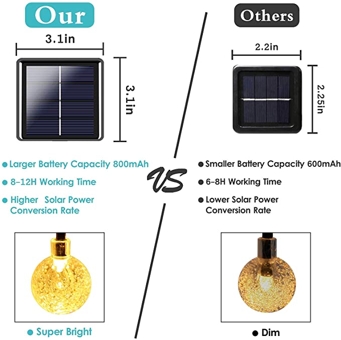 💡Long-lasting durability: 75FT 200LED 800 mAh battery and 200 mAh solar panel can make these solar string lights work for up to 10 hours after 6-8 hours of charging; we have upgraded the LED chip and battery to make the solar garden lights last longer than others The brand is 20% longer.
