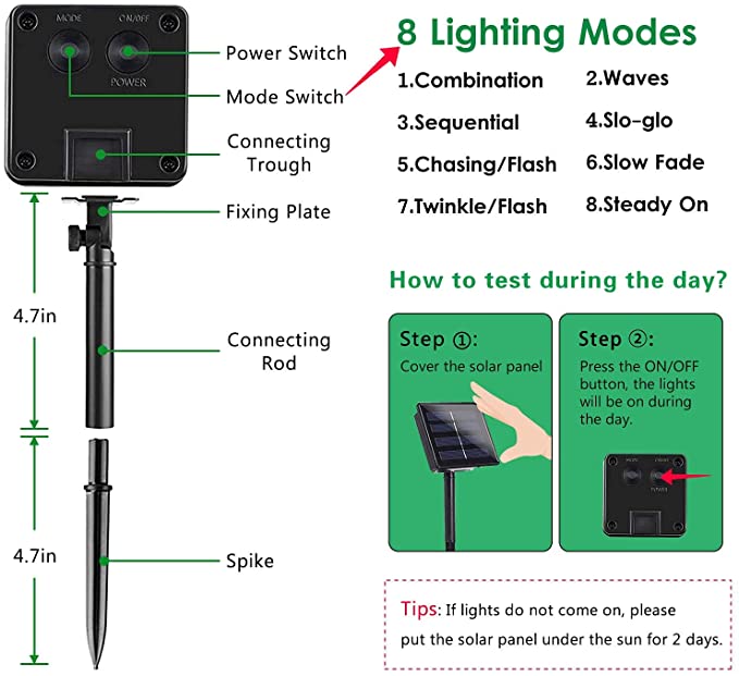 💡Auto On/Off & Memory Function– The outside solar string lights come with the automatic on/off feature of which the light sensor panel makes it turns on at night and off at dawn. Memory chip will remember last mode setting, so you don’t need to reset mode every day.